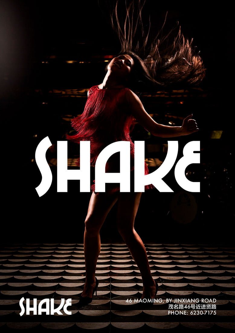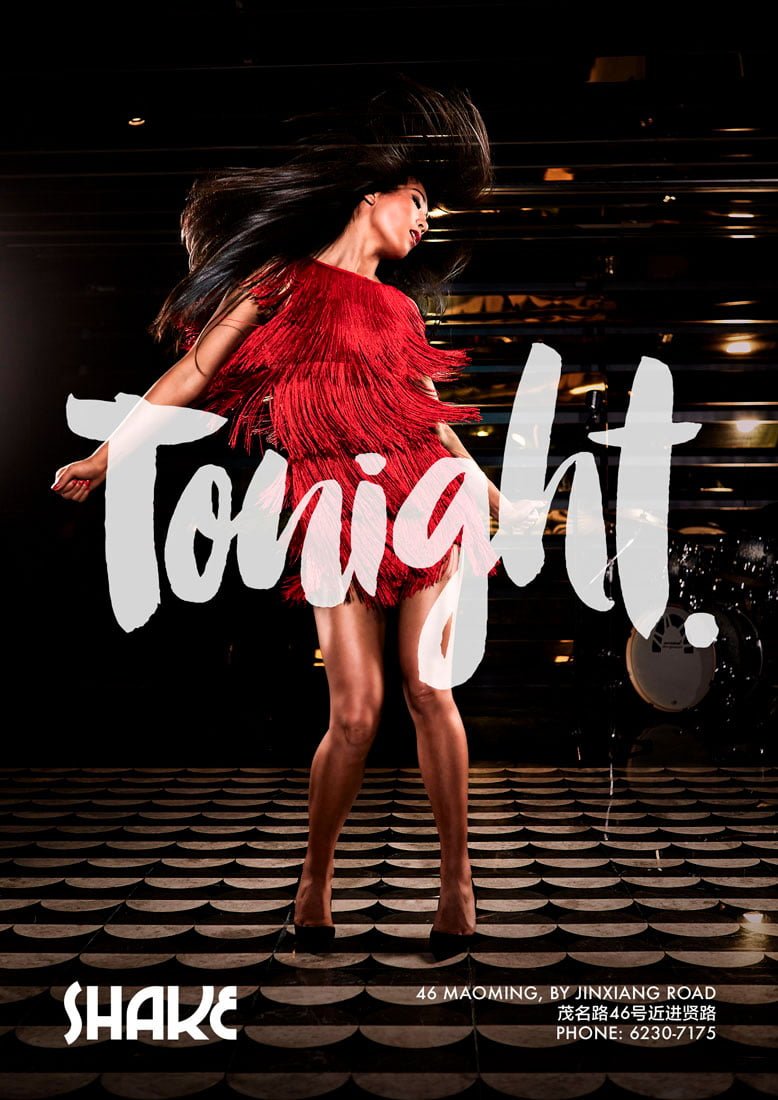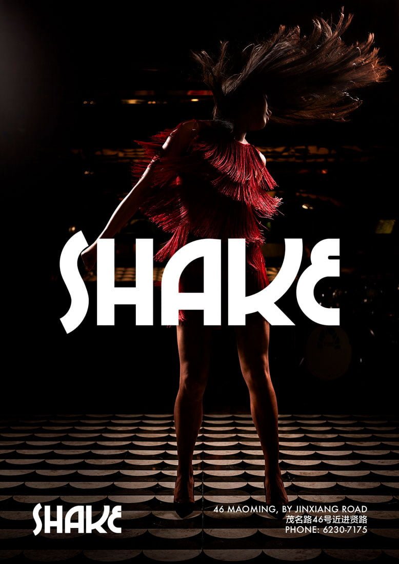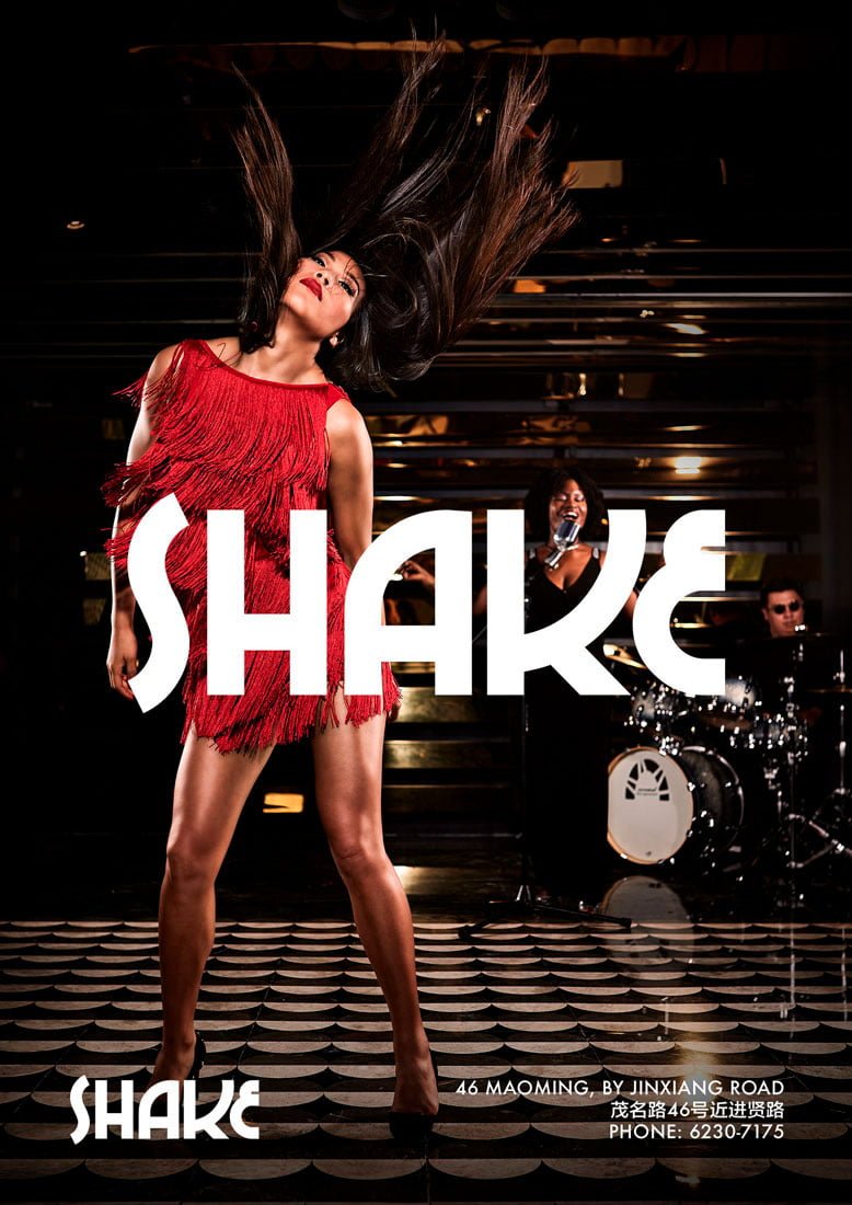 Shake bar is a new venue in Shanghai. When they were planning their opening party they needed some photography for their promotion materials as well as a poster. Being a live-venue for Soul music in Shanghai, it was important to communicate movement in our photos.